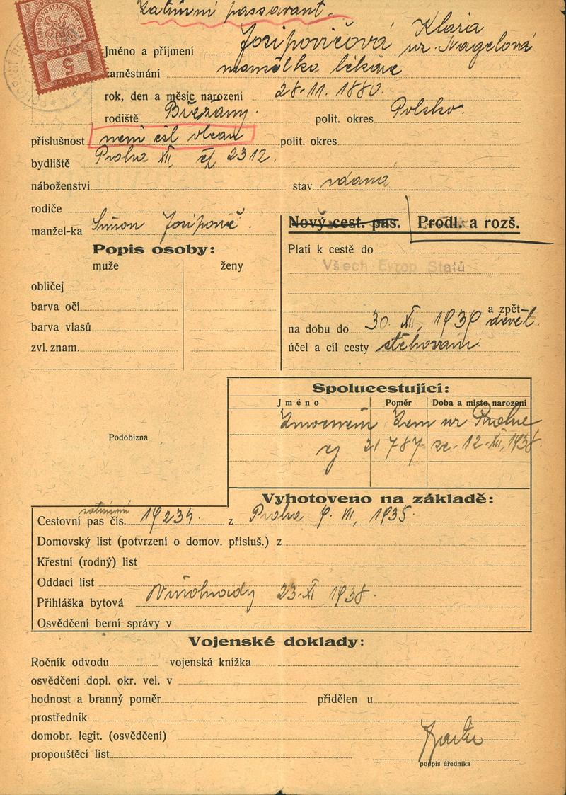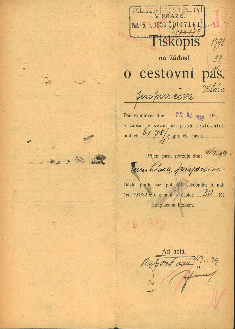 Josipoviciová Klára: Žádost o prodloužení prozatímního cestovního pasu