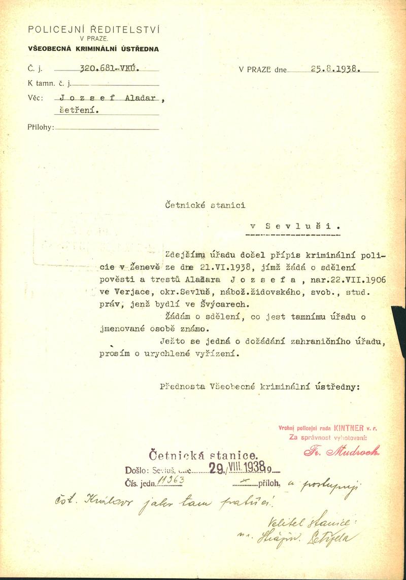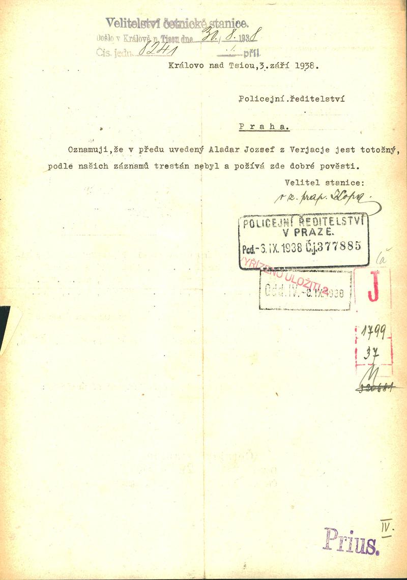 National archives Prague > Police Directorate Prague > 1941-1950 > J > Jozsef Aladar