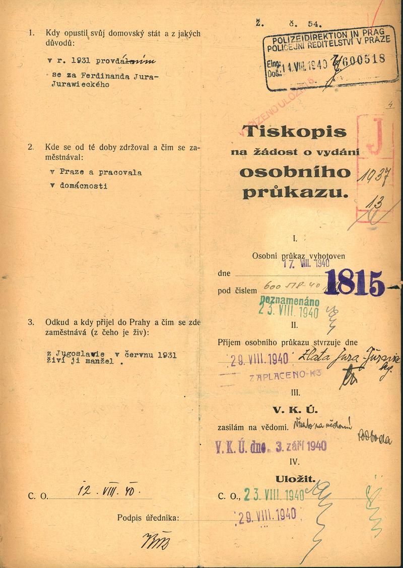 National archives Prague > Police Directorate Prague > 1941-1950 > J > Jura Jurawieckiová Zlata