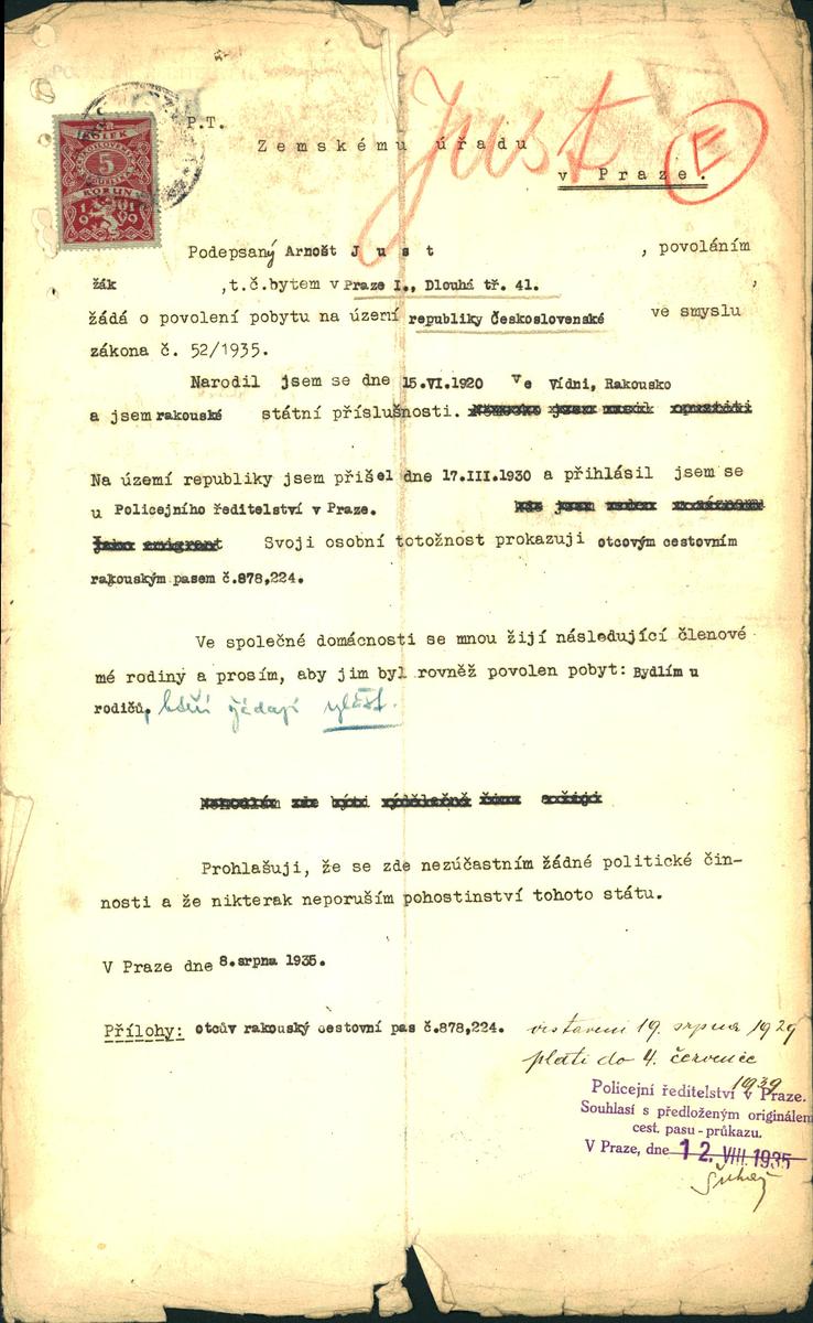 Just Arnošt: Žádost o povolení pobytu