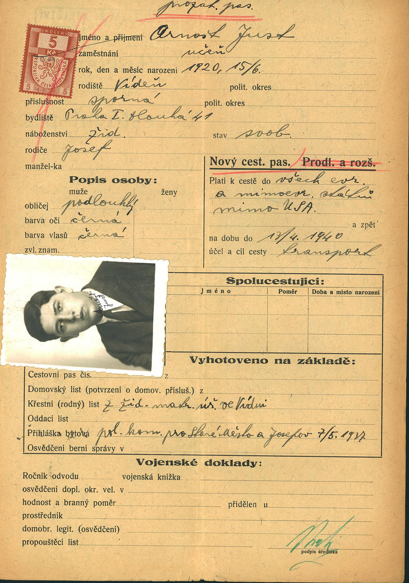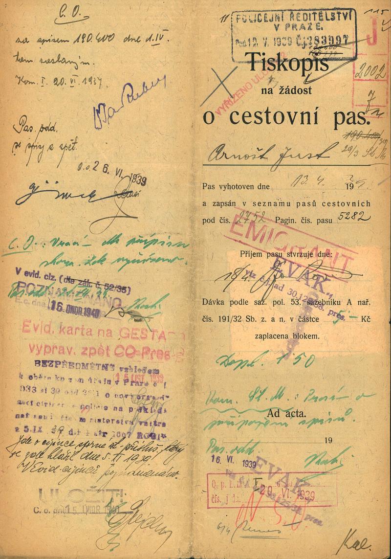 Just Arnošt: Žádost o vydání prozatímního cestovního pasu