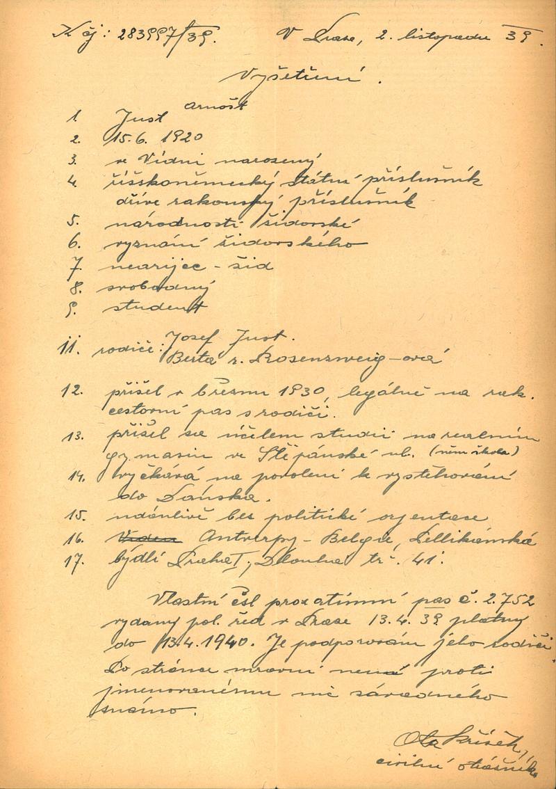 National archives Prague > Police Directorate Prague > 1941-1950 > J > Just Arnošt