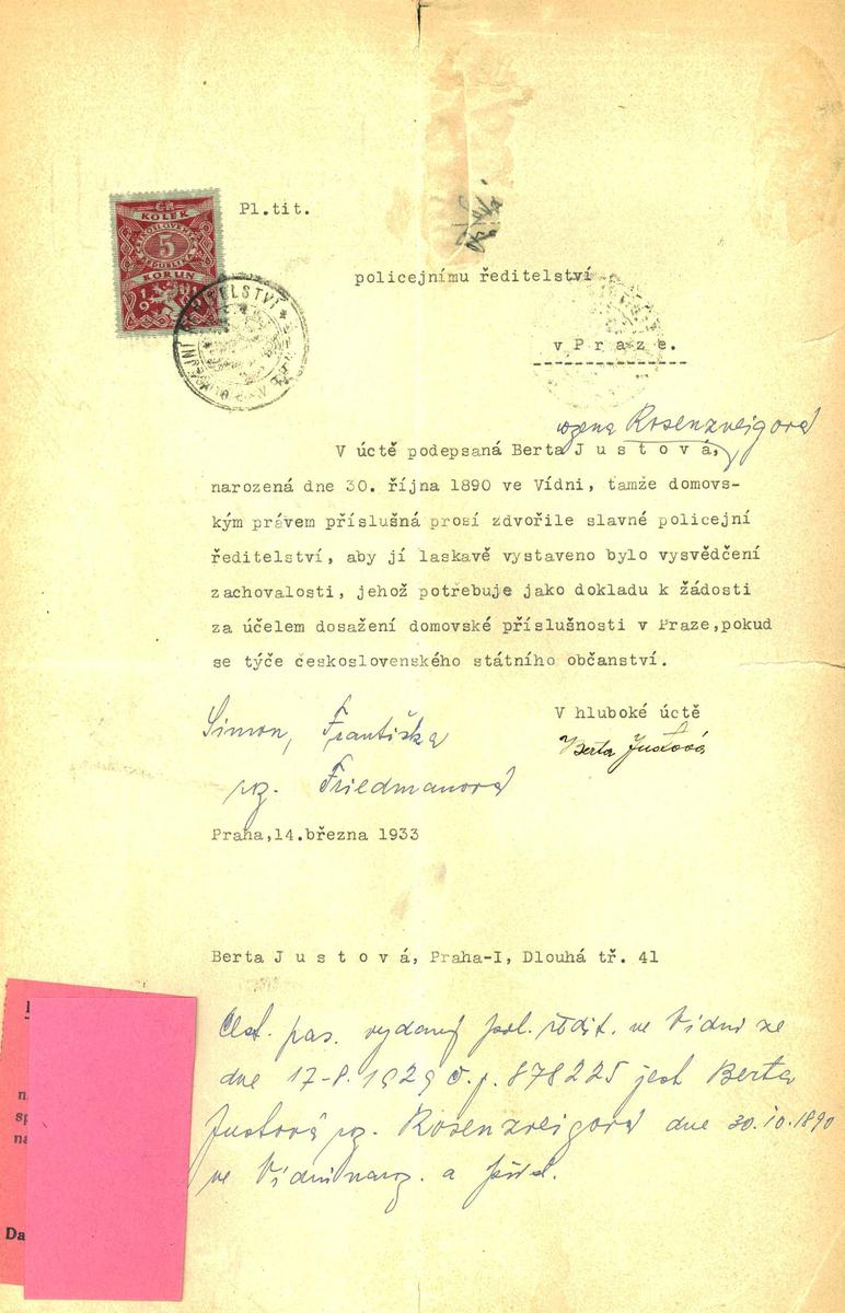 Justová Berta: Žádost o vystavení vysvědčení zachovalosti