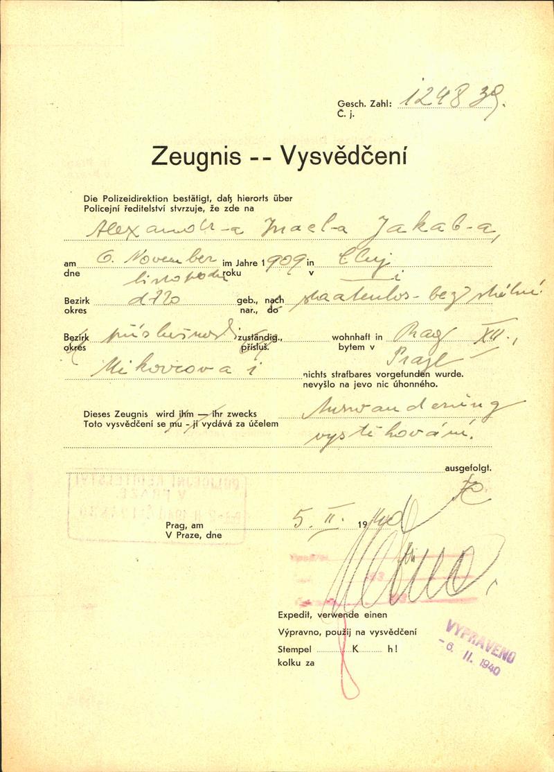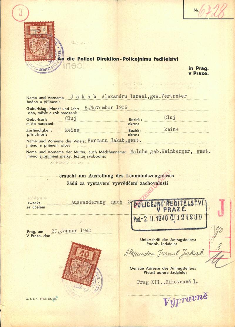 National archives Prague > Police Directorate Prague > 1941-1950 > J > Jakob Alexandr