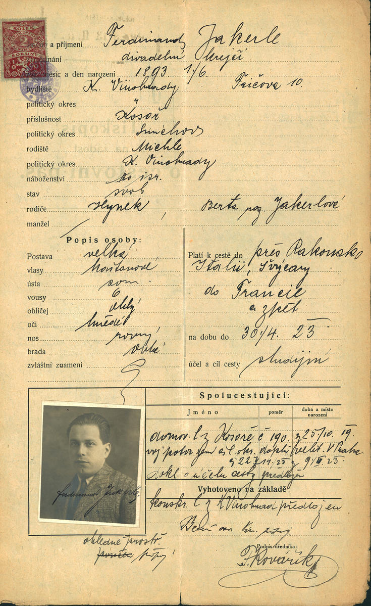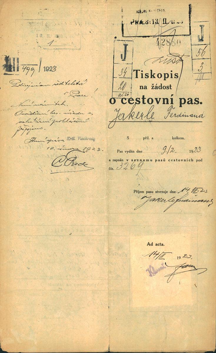 Jakerle Ferdinand: Žádost o vydání cestovního pasu