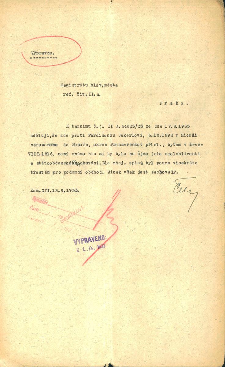 National archives Prague > Police Directorate Prague > 1941-1950 > J > Jakerle Ferdinand