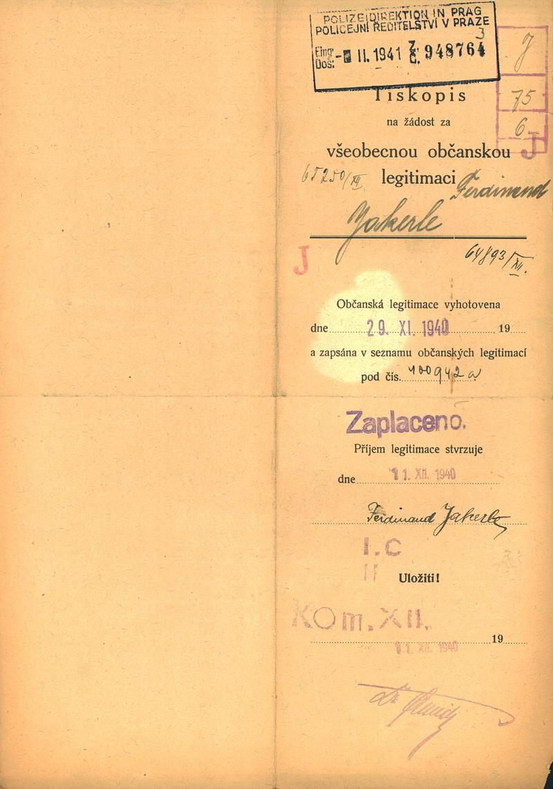 Jakerle Ferdinand: Žádost o vydání občanské legitimace
