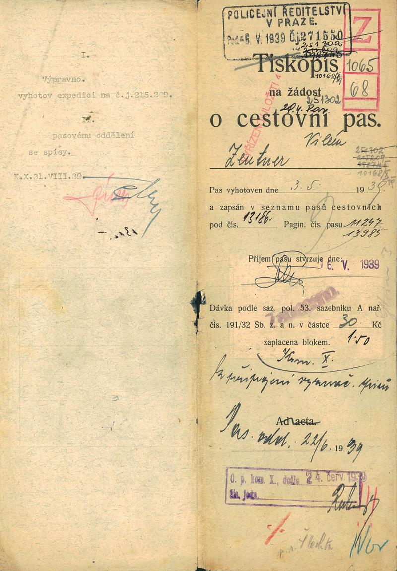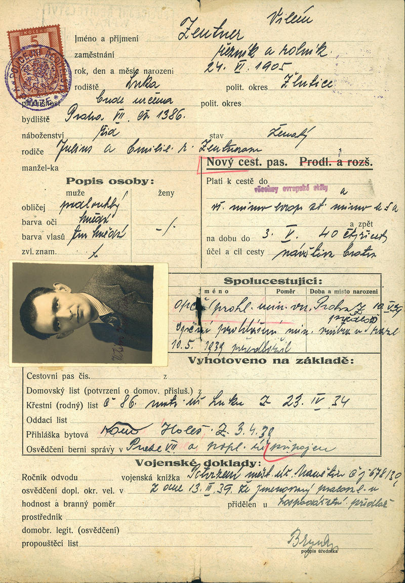 Zentner Vilém: Žádost o vydání cestovního pasu