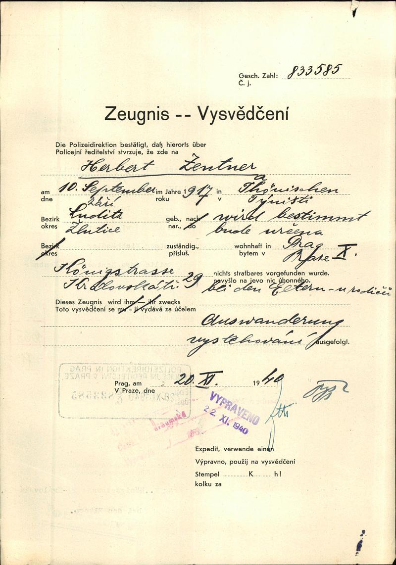 National archives Prague > Police Directorate Prague > 1931-1940 > Z > Zentner Herbert