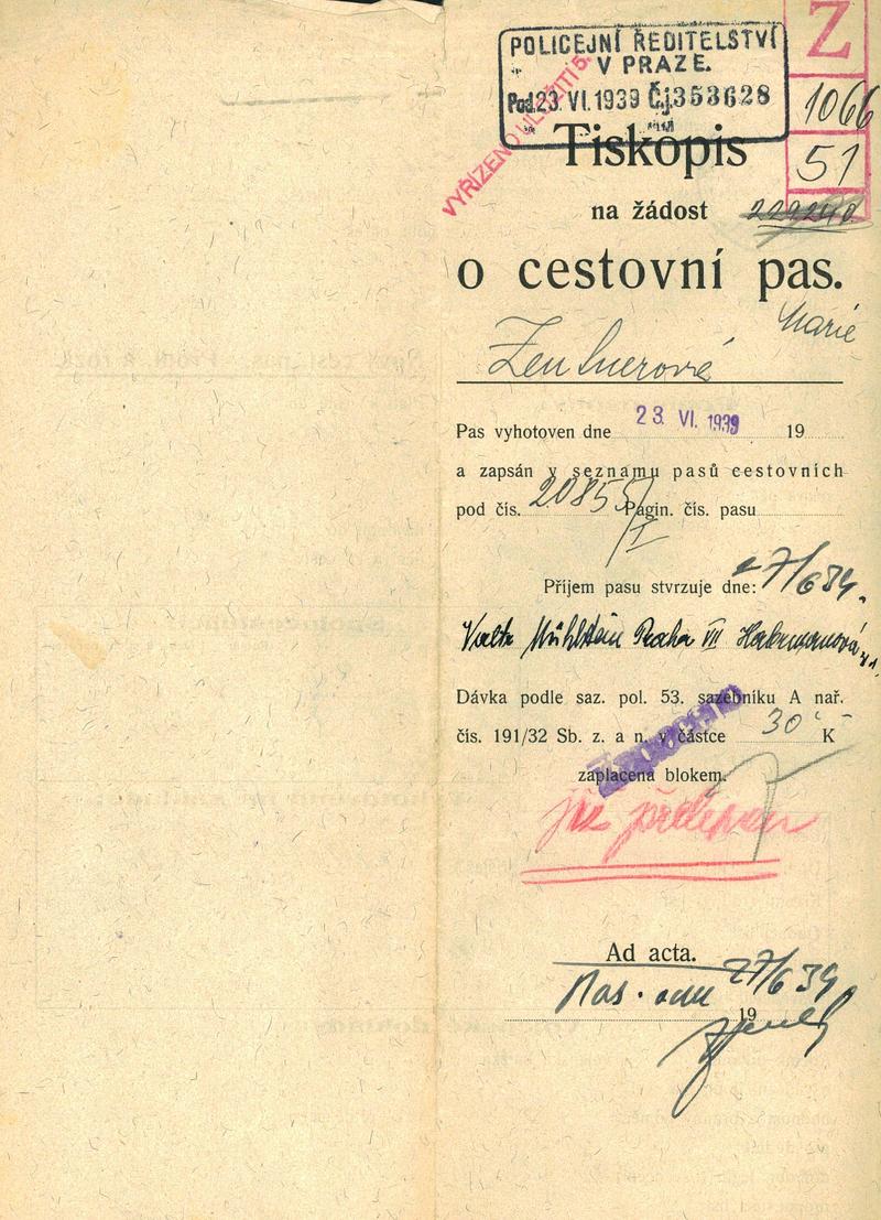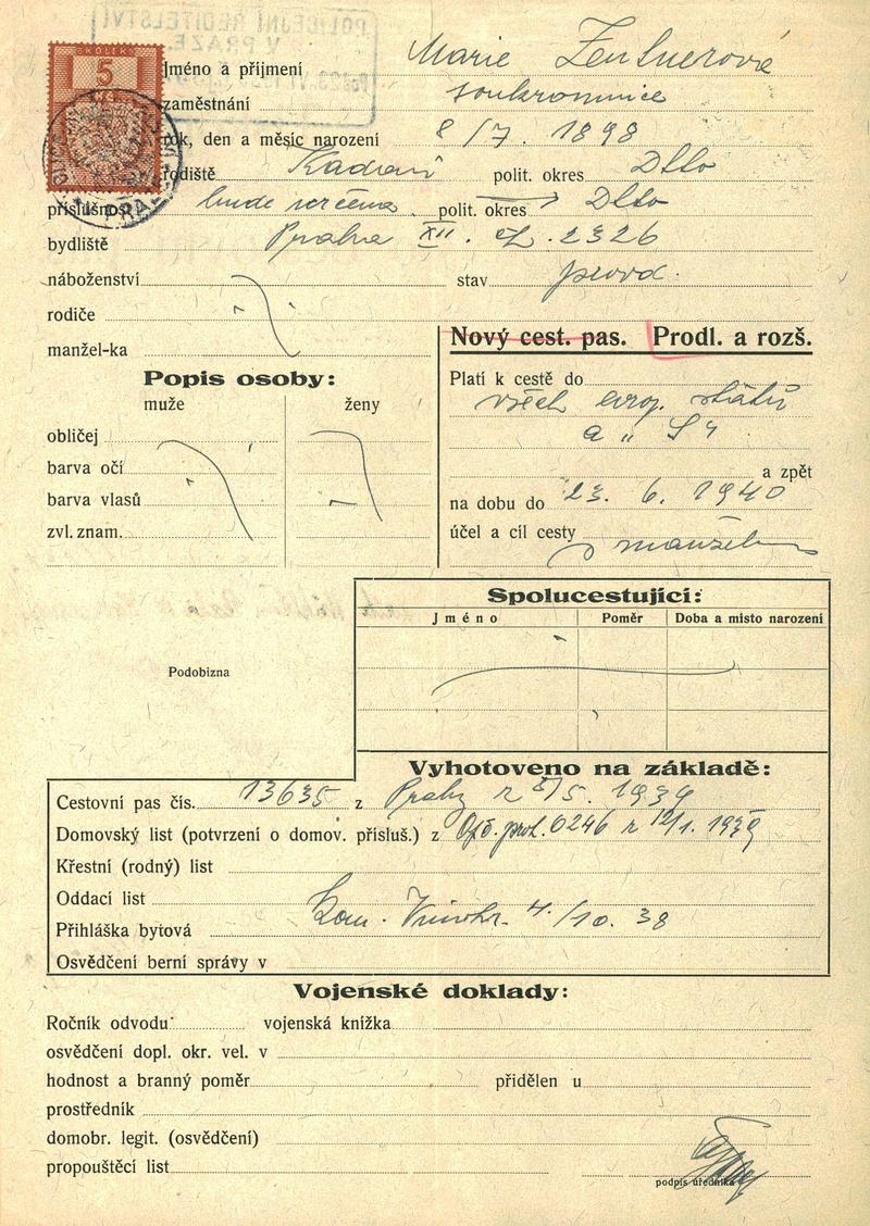 Zentnerová Marie: Žádost o prodloužení cestovního pasu