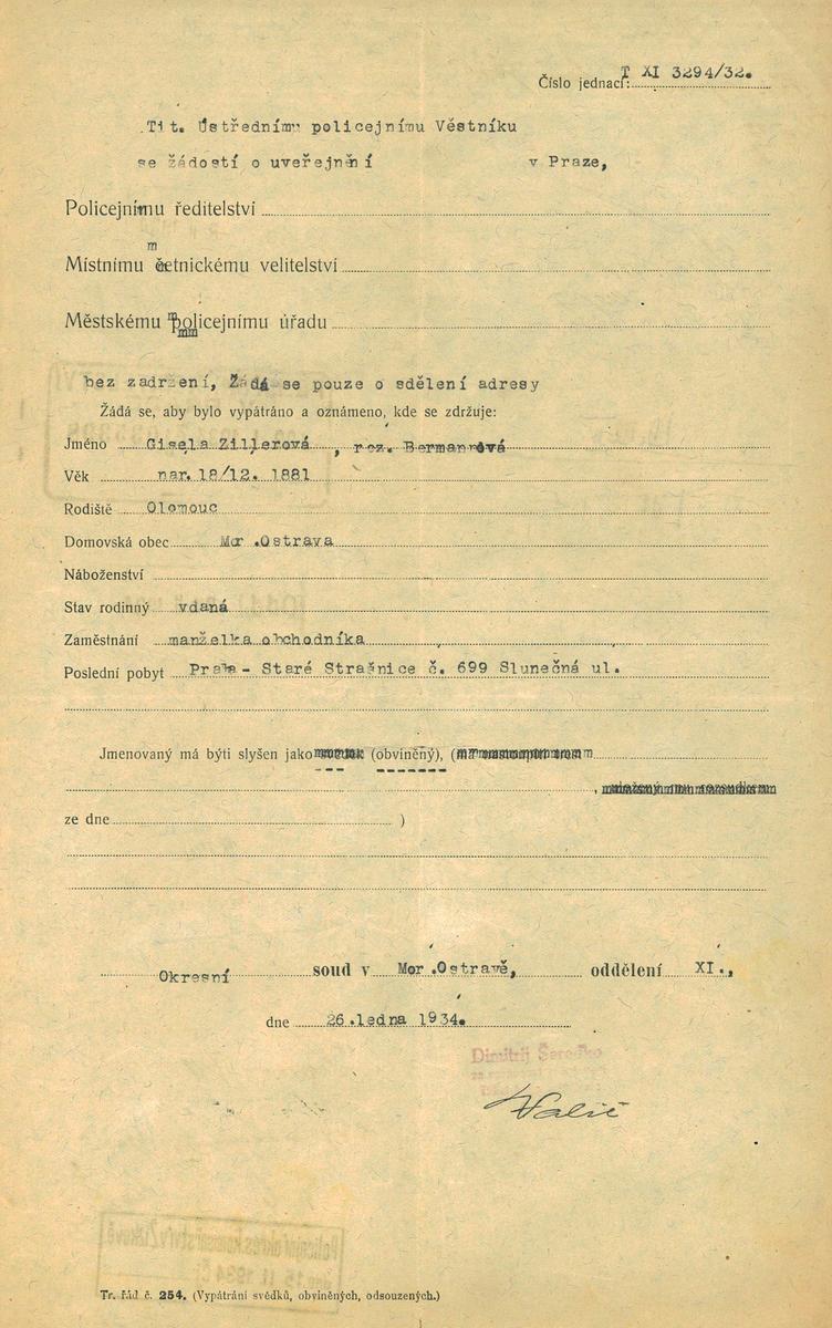 National archives Prague > Police Directorate Prague > 1931-1940 > Z > Czillerová Gisela
