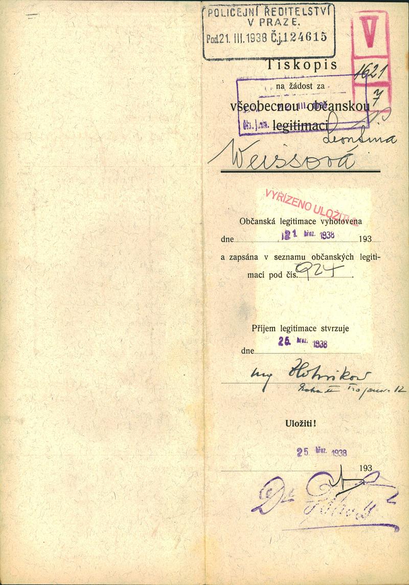 Zlotniková Leontine: Žádost o vydání občanské legitimace