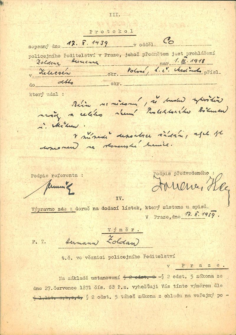 National archives Prague > Police Directorate Prague > 1931-1940 > Z > Zoldan Hermann