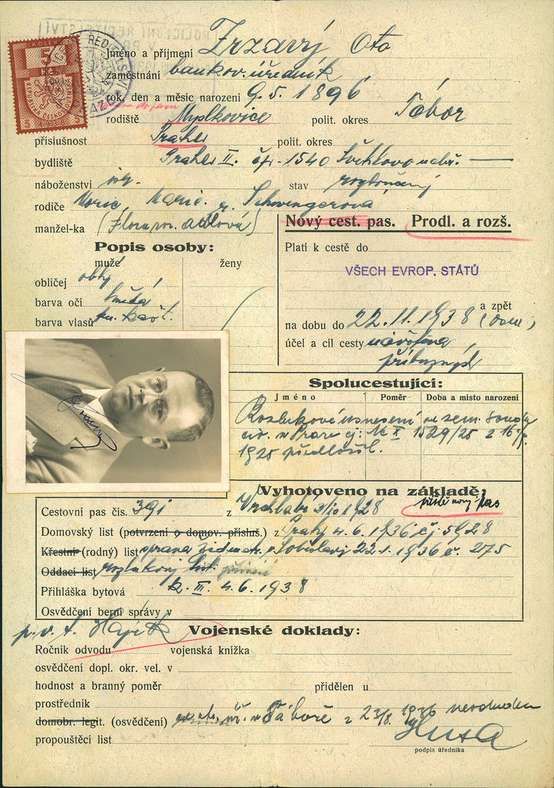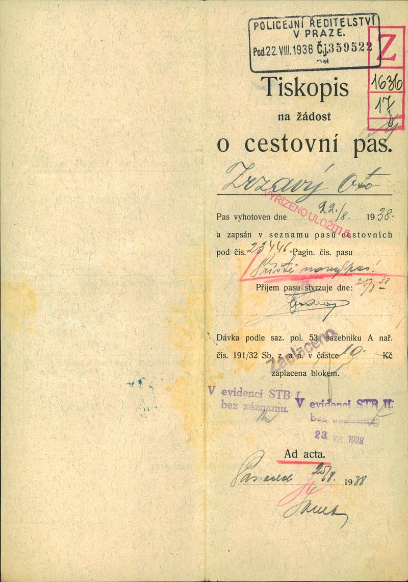 Zrzavý Otto: Žádost o prodloužení a rozšíření cestovního pasu