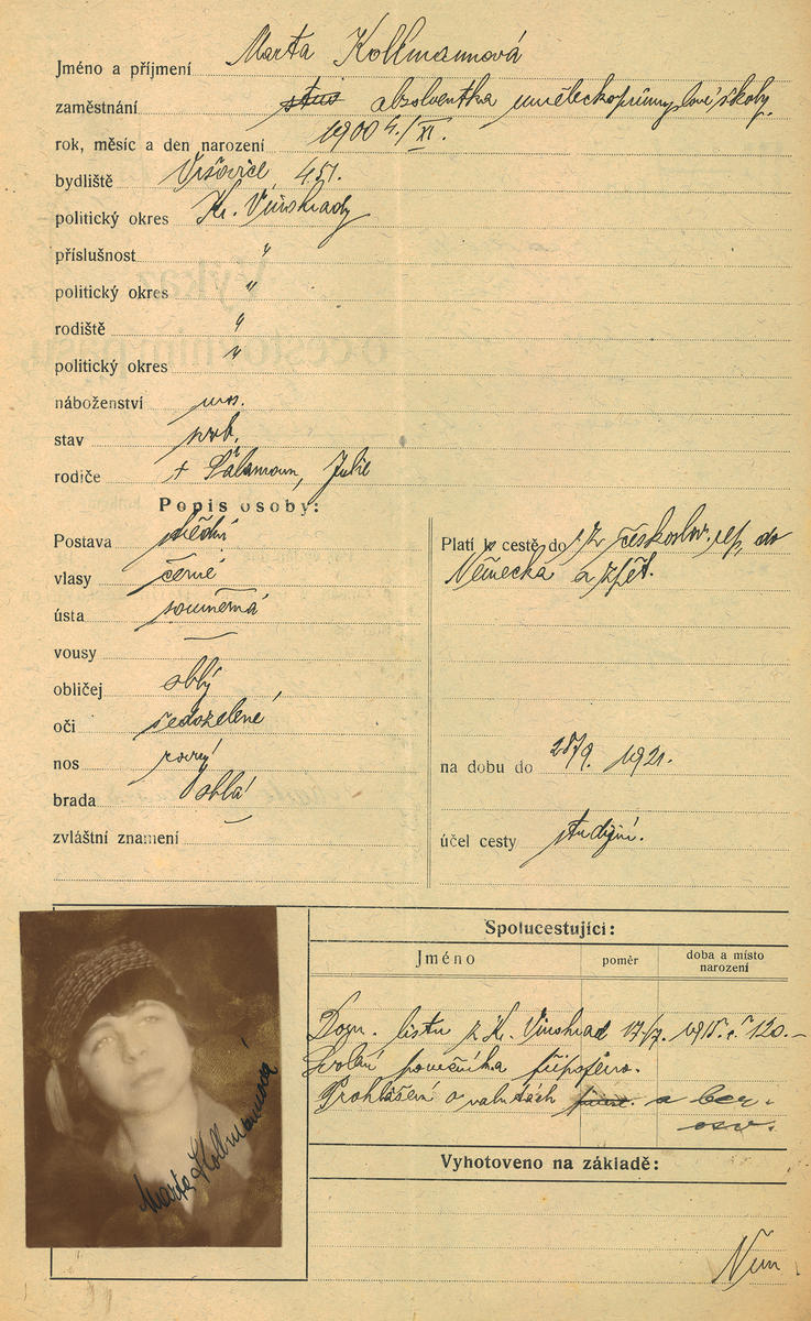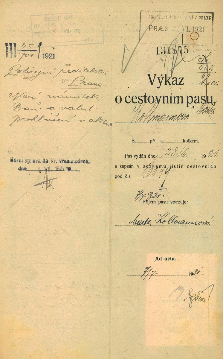 Zuckerová Marta: Žádost o vydání cestovního pasu