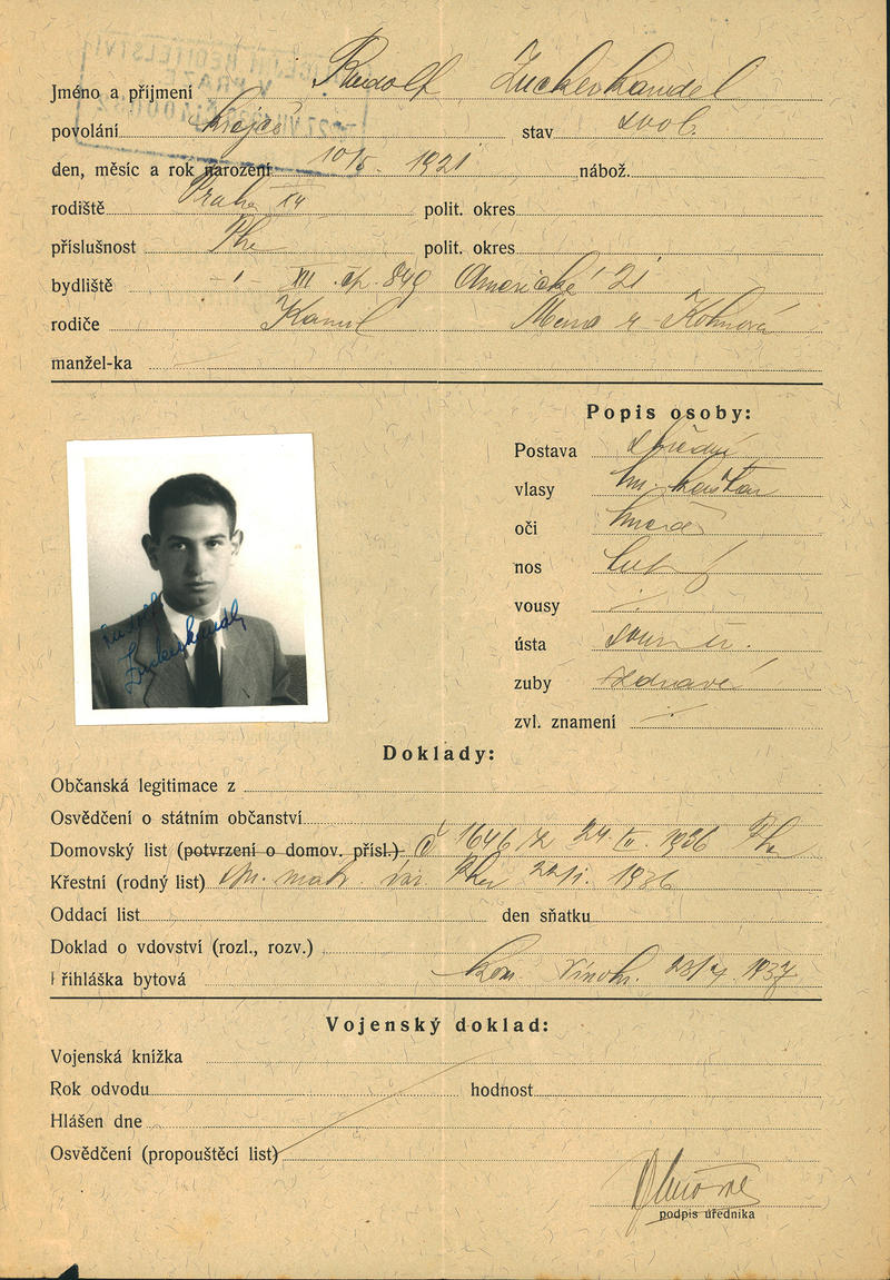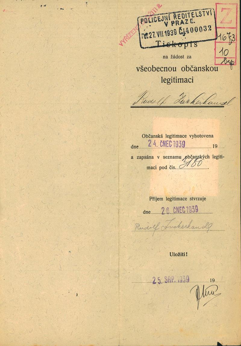 Zuckerkandel Rudolf: Žádost o vydání občanské legitimace