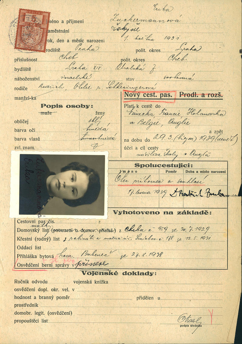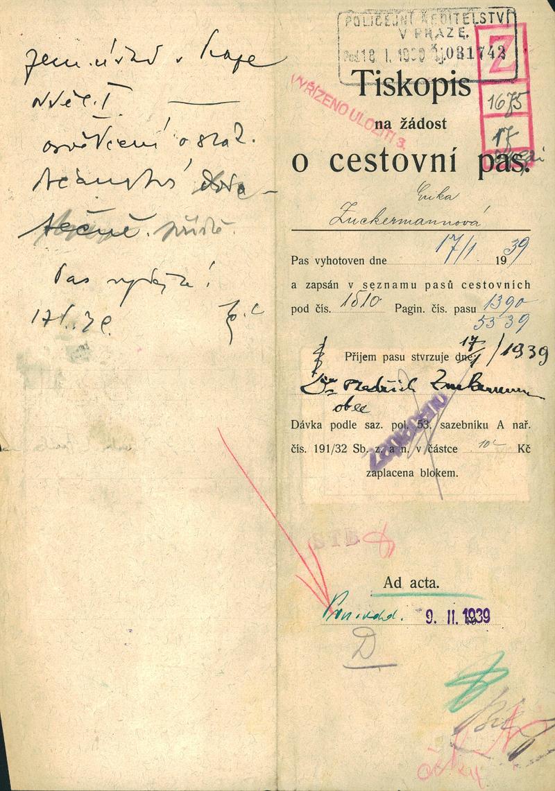Zuckermannová Erika: Žádost o vydání cestovního pasu