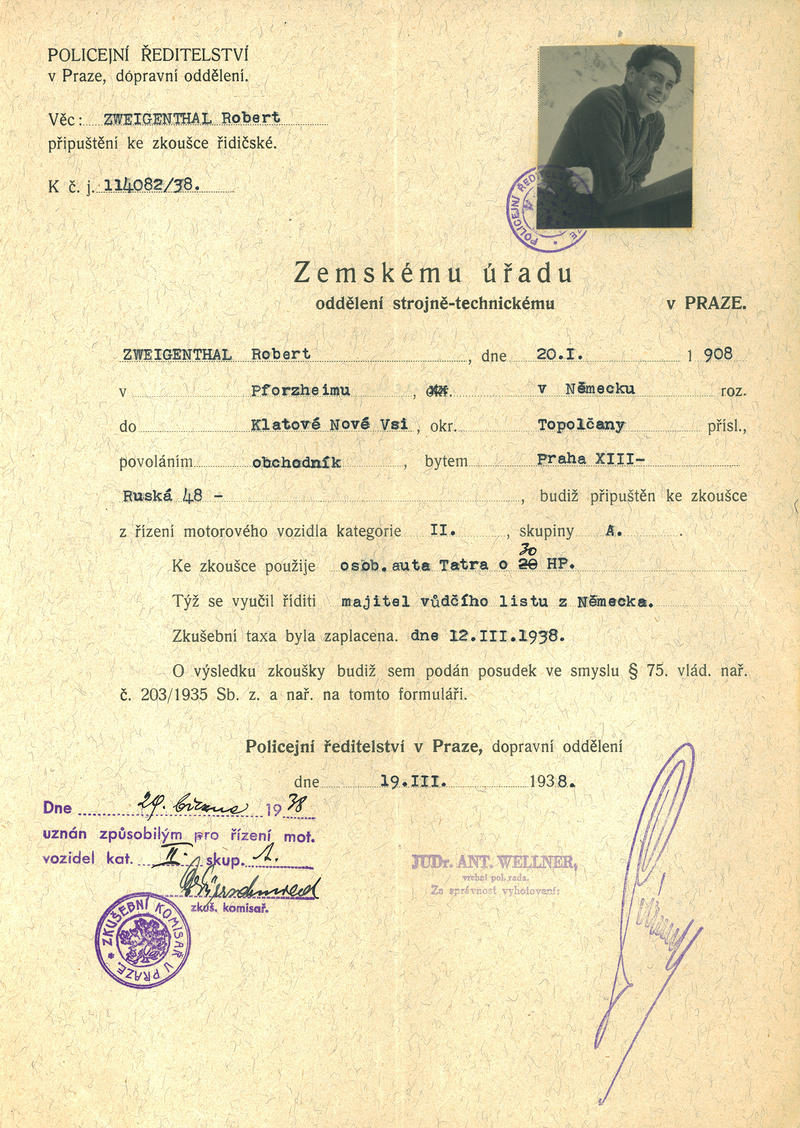 Zweigenthal Robert: Připuštění k řidičské zkoužce