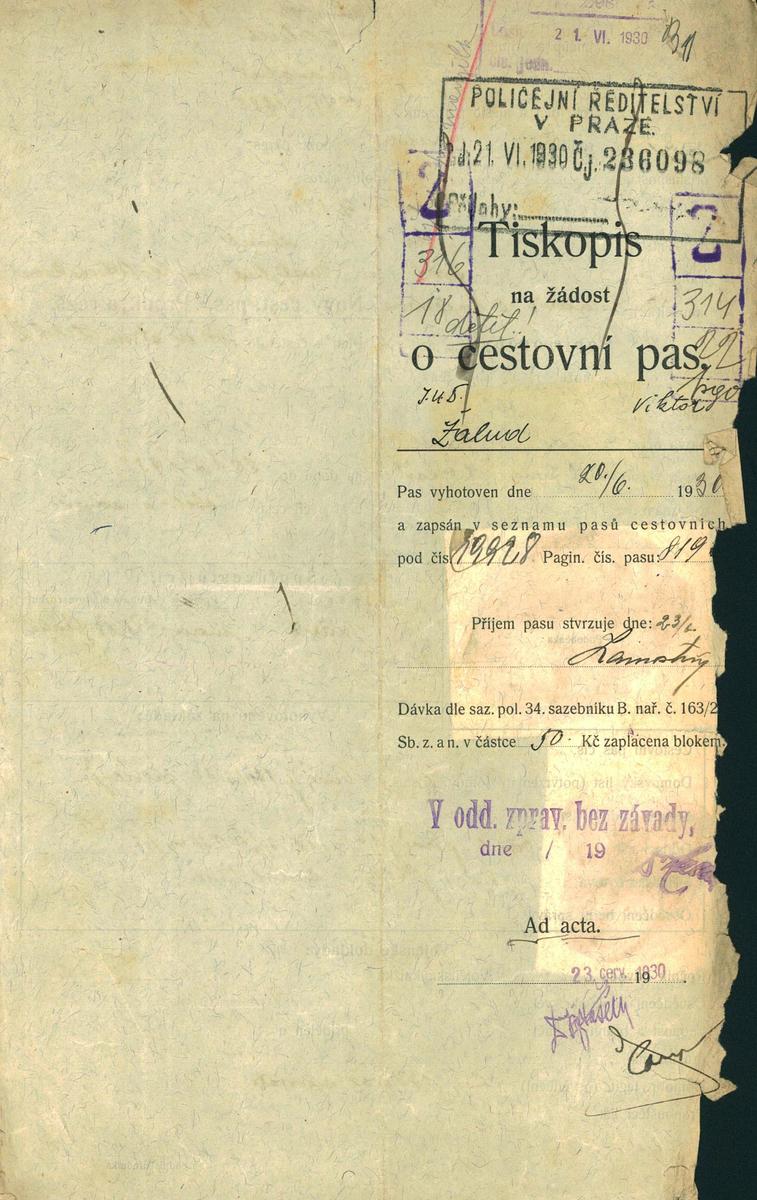 Žalud Viktor: Žádost o vydání cestovního pasu