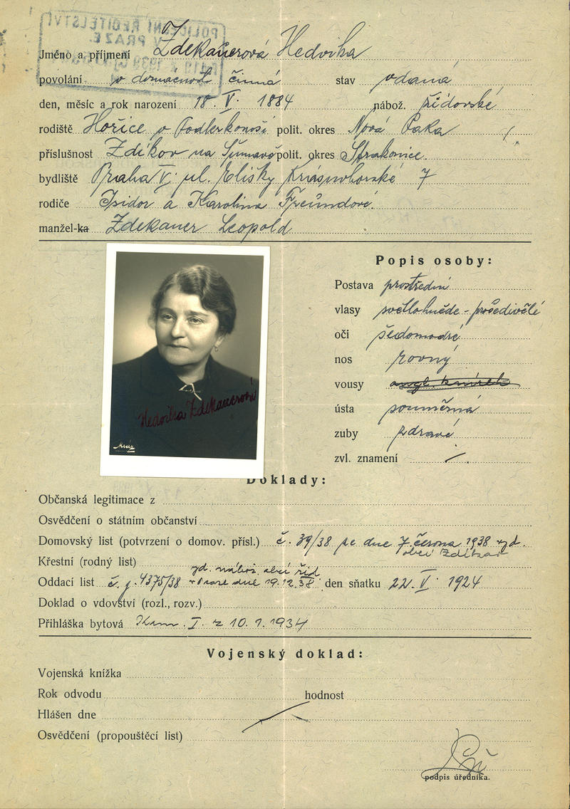 National archives Prague > Police Directorate Prague > 1931-1940 > Z > Zdekauerová Hedvika
