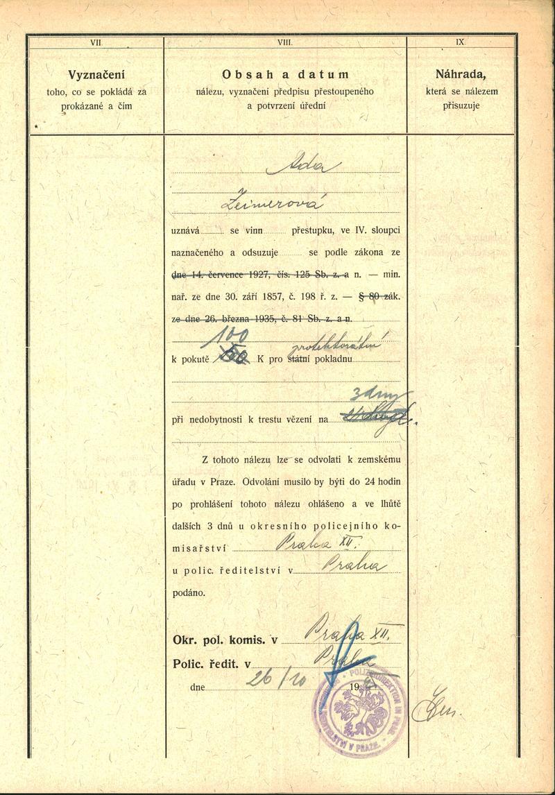 National archives Prague > Police Directorate Prague > 1931-1940 > Z > Zeimerová Ada