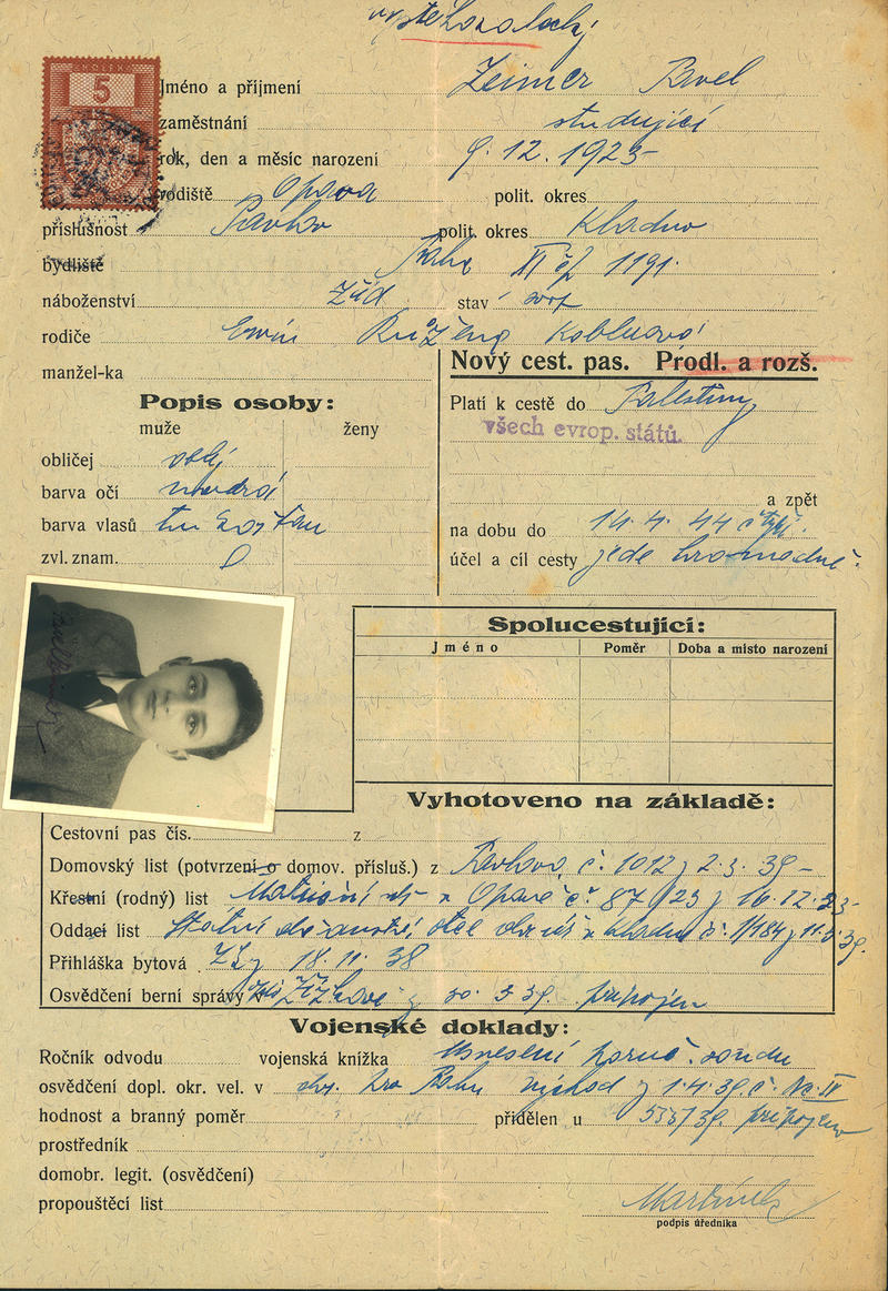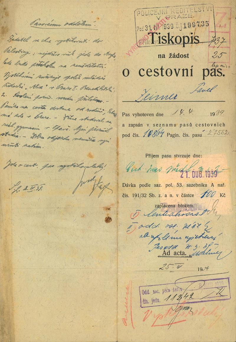 Zeimer Pavel: Žádost o vydání cestovního pasu