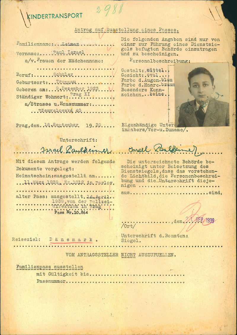 Zeimer Pavel: Žádost o vydání cestovního pasu