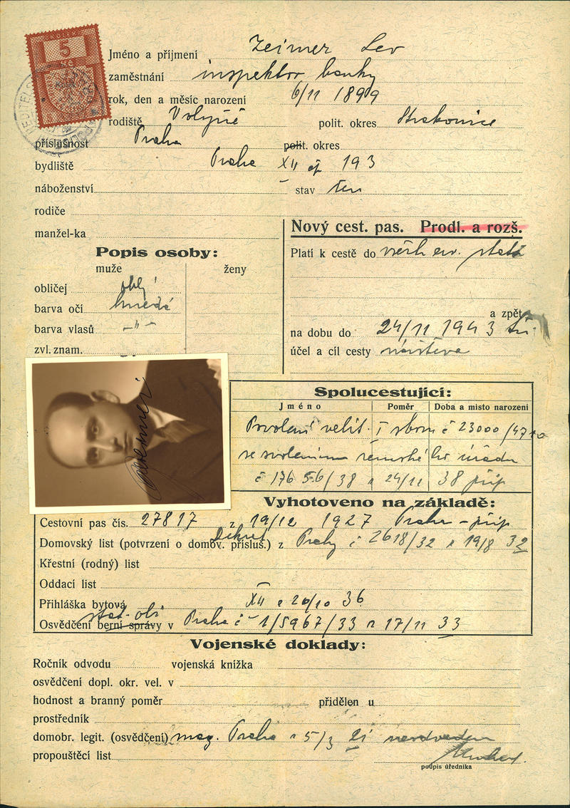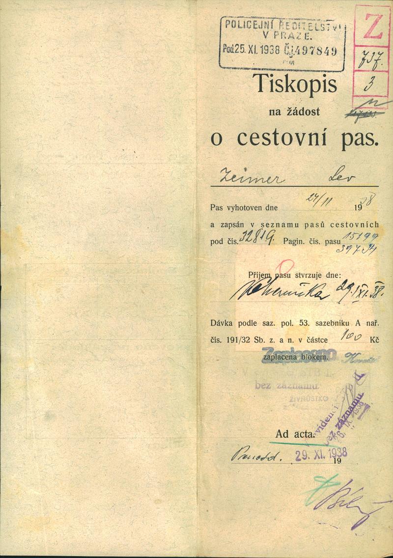 Zeimer Leo: Žádost o vydání cestovního pasu