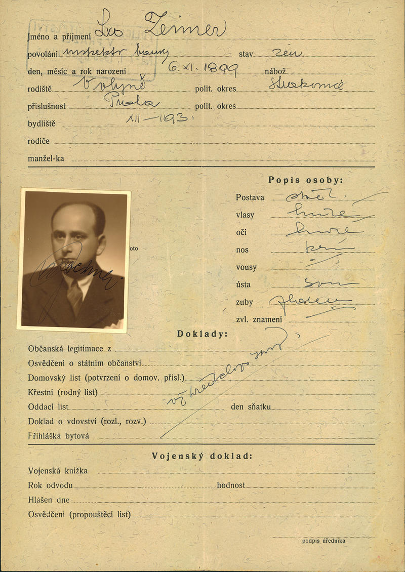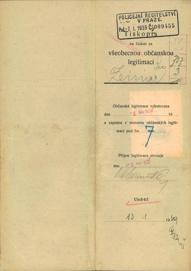 Zeimer Leo: Žádost o vydání občanské legitimace