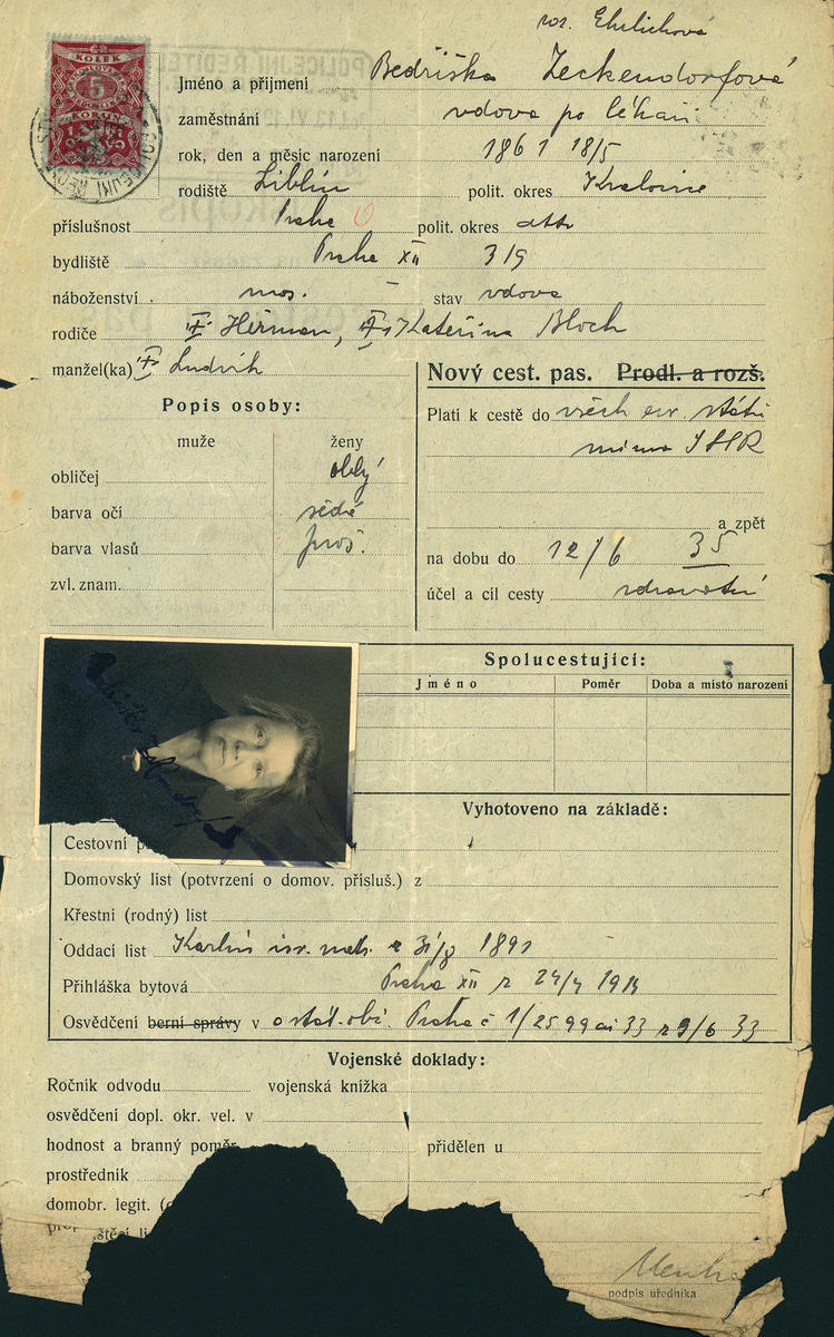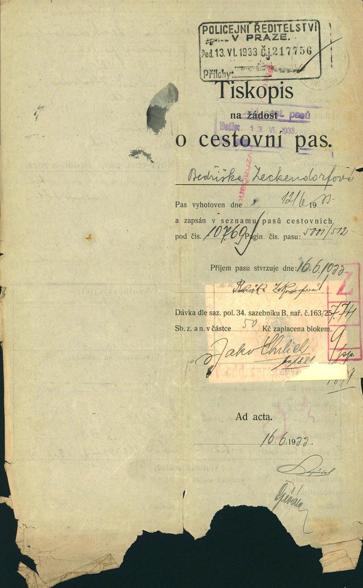 Zekendorfová Bedřiška: Žádost o vydání cestovního pasu