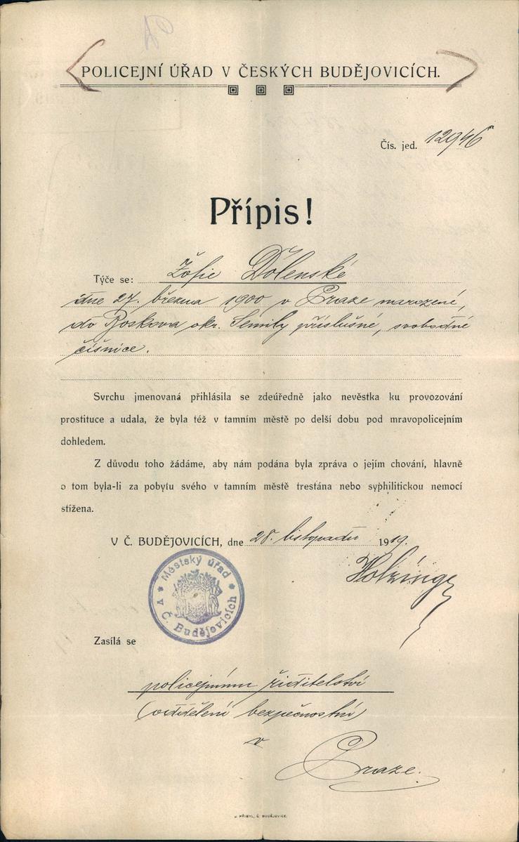 National archives Prague > Police Directorate Prague > 1931-1940 > Z > Želinová Žofie