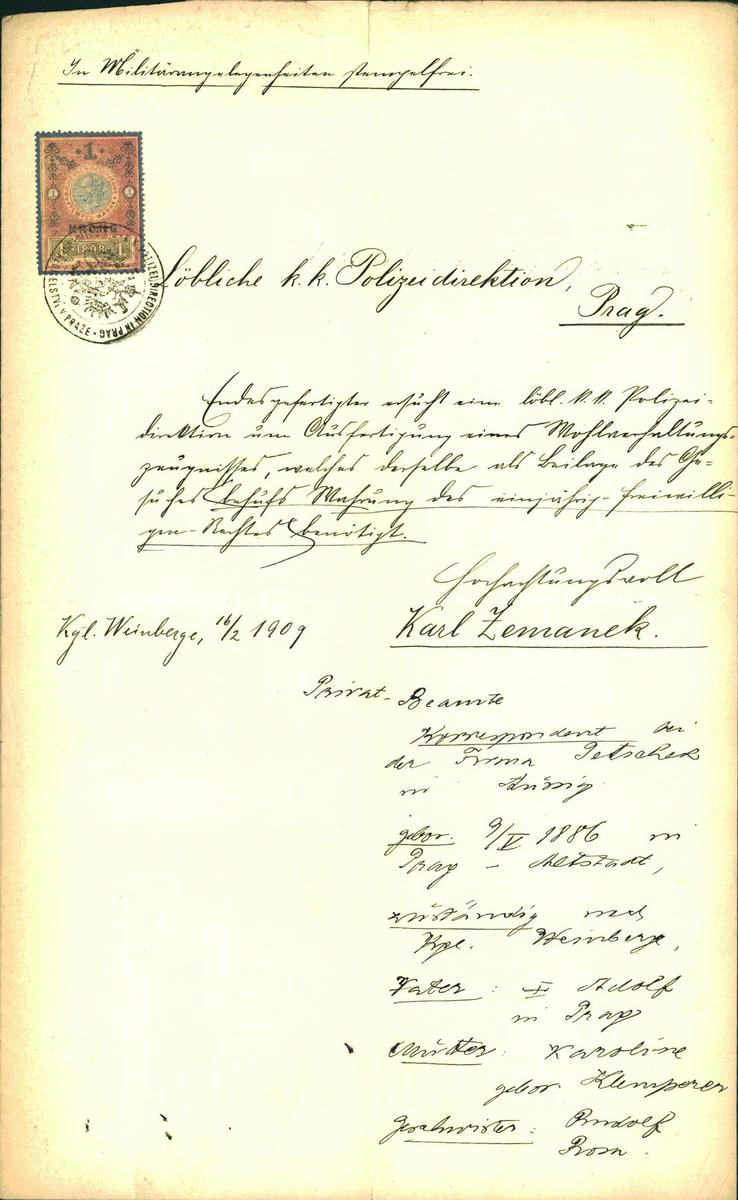Zemánek Karel: Žádost o vystavení vysvědčení zachovalosti