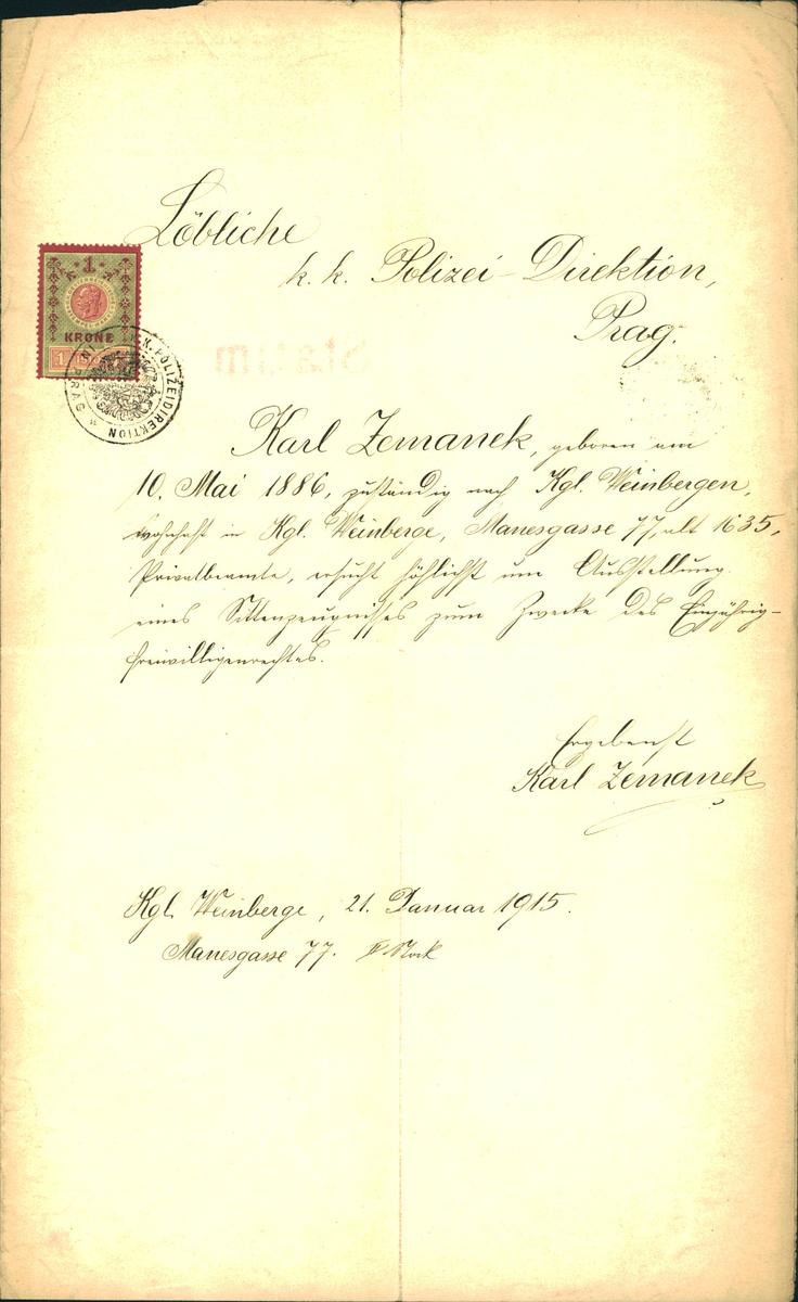 Zemánek Karel: Žádost o vystavení vysvědčení zachovalosti