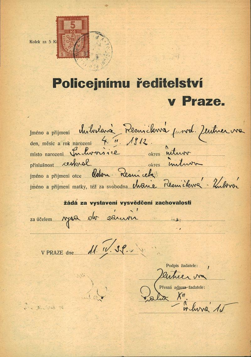 National archives Prague > Police Directorate Prague > 1941-1950 > Z > Zentnerová Miloslava