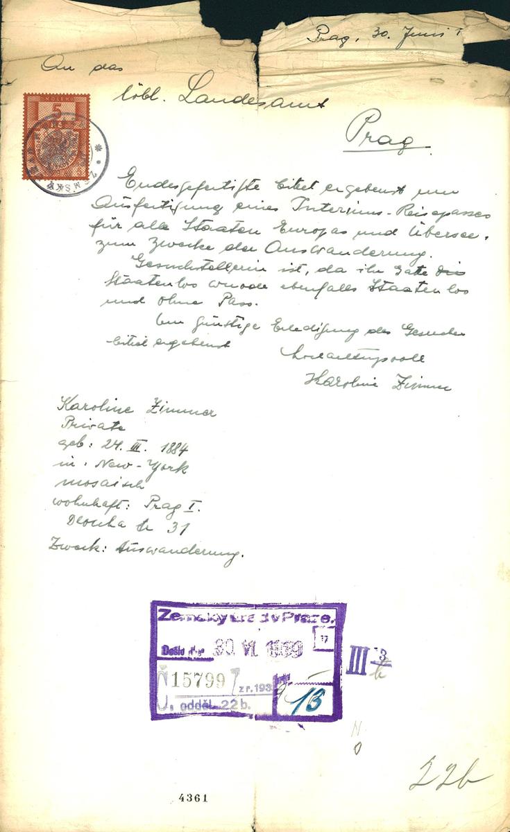 Zimmerová Karoline: Žádost o udělení víza