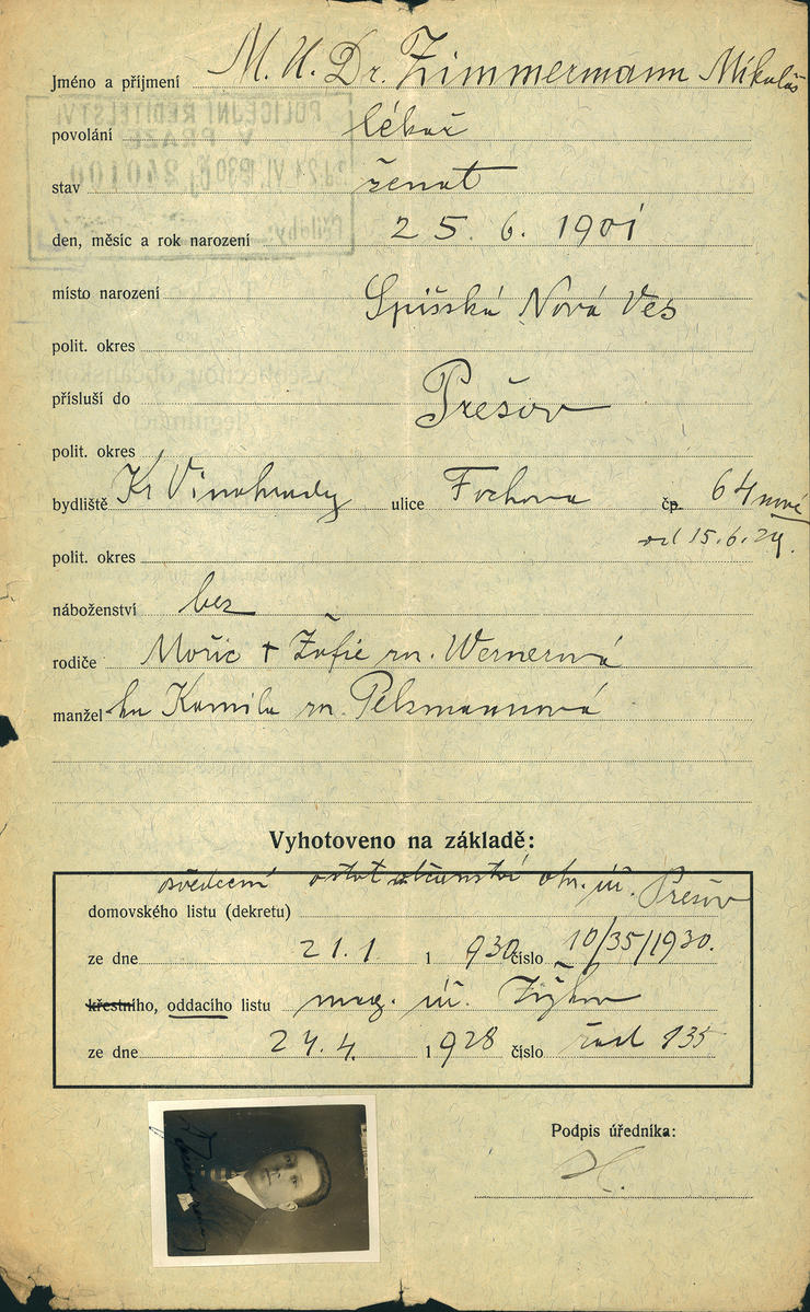 National archives Prague > Police Directorate Prague > 1941-1950 > Z > Zimmermann Mikuláš