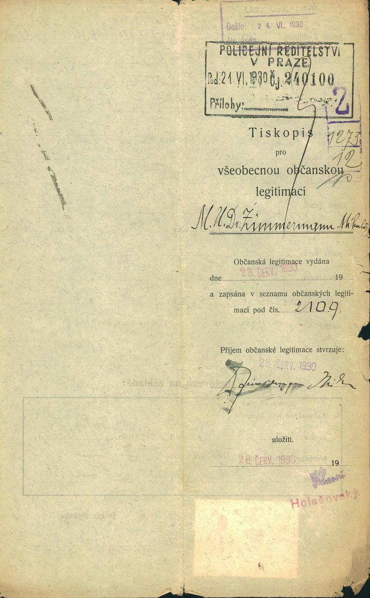 Zimmermann Mikuláš: Žádost o vydání občanské legitimace