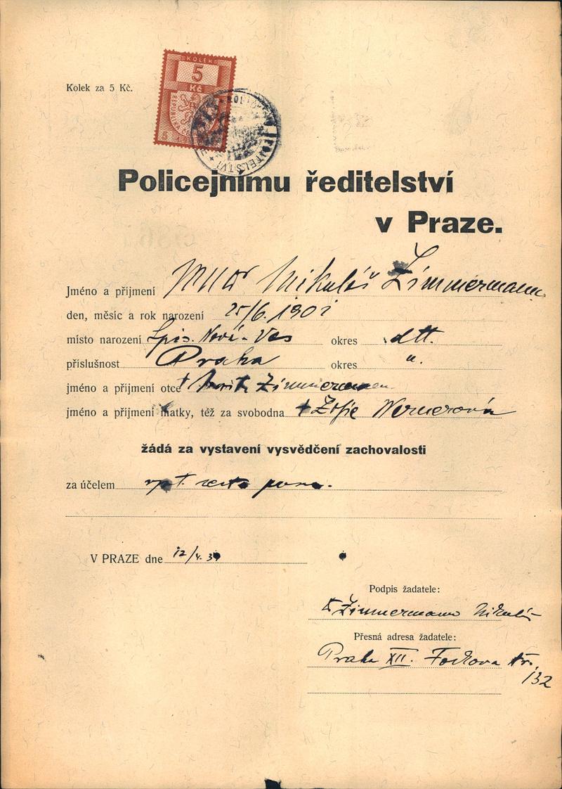 National archives Prague > Police Directorate Prague > 1941-1950 > Z > Zimmermann Mikuláš
