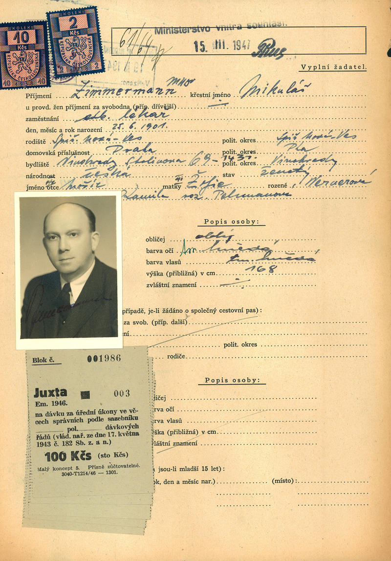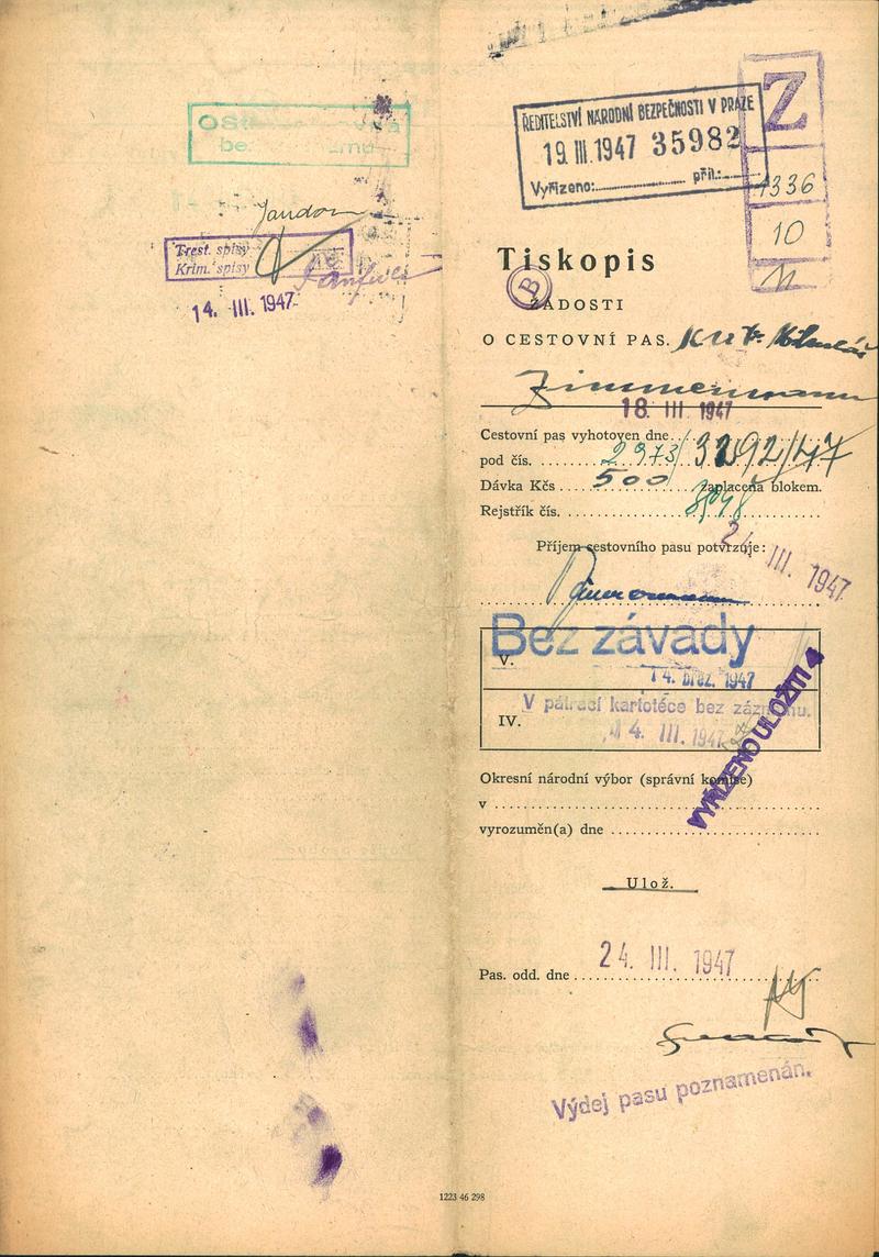 Zimmermann Mikuláš: Žádost o vydání cestovního pasu