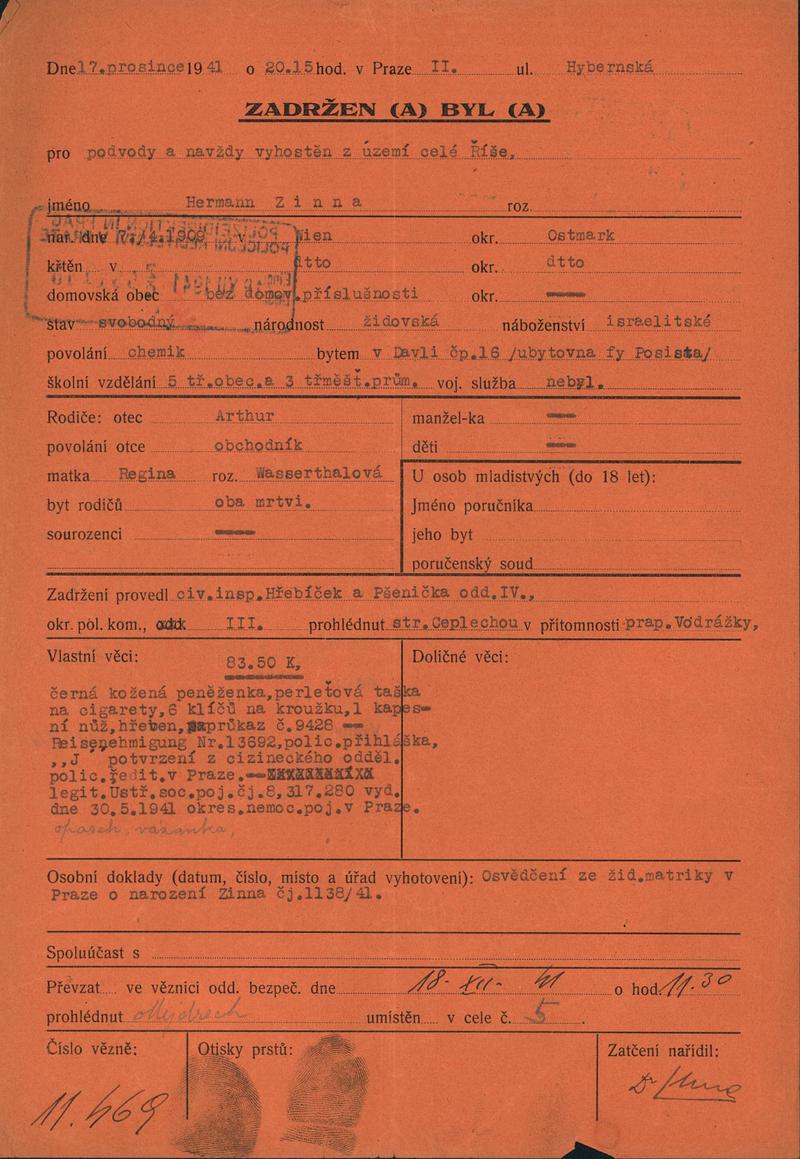 National archives Prague > Police Directorate Prague > 1941-1950 > Z > Zinn Hermann