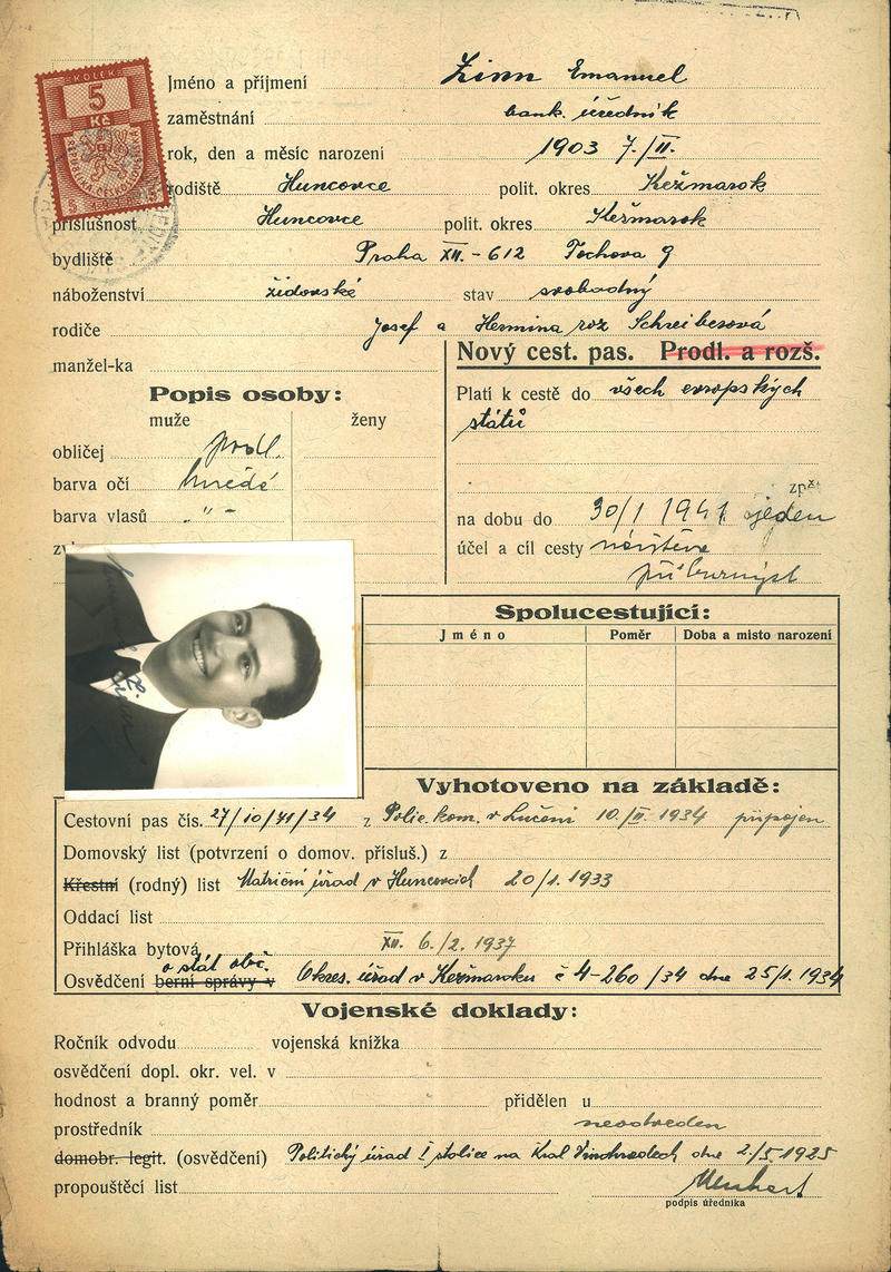 Zinn Emanuel: Žádost o vydání cestovního pasu