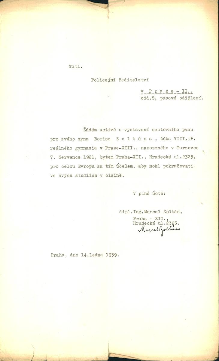 Zoltán Boris: Žádost o vydání cestovního pasu