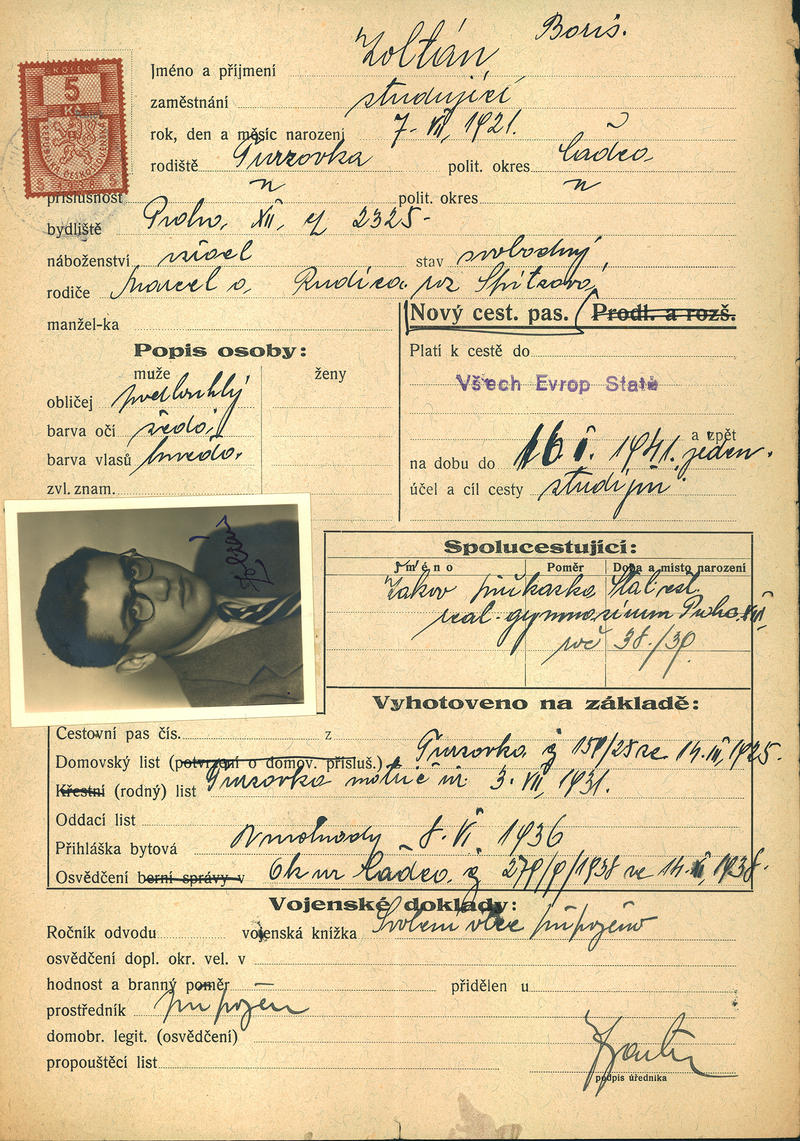 Zoltán Boris: Žádost o vydání cestovního pasu