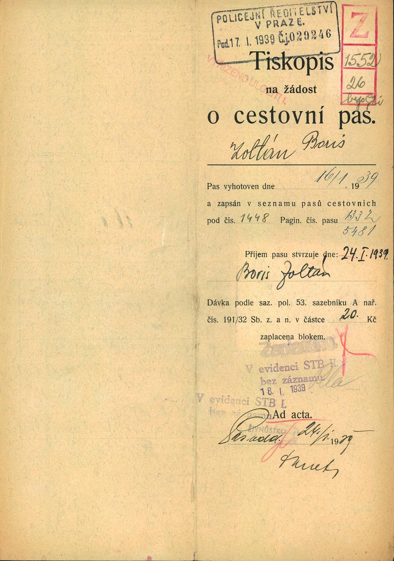 National archives Prague > Police Directorate Prague > 1941-1950 > Z > Zoltán Boris