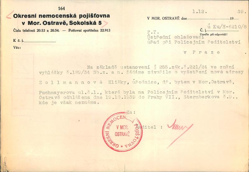 National archives Prague > Police Directorate Prague > 1941-1950 > Z > Zollmannová Eliška