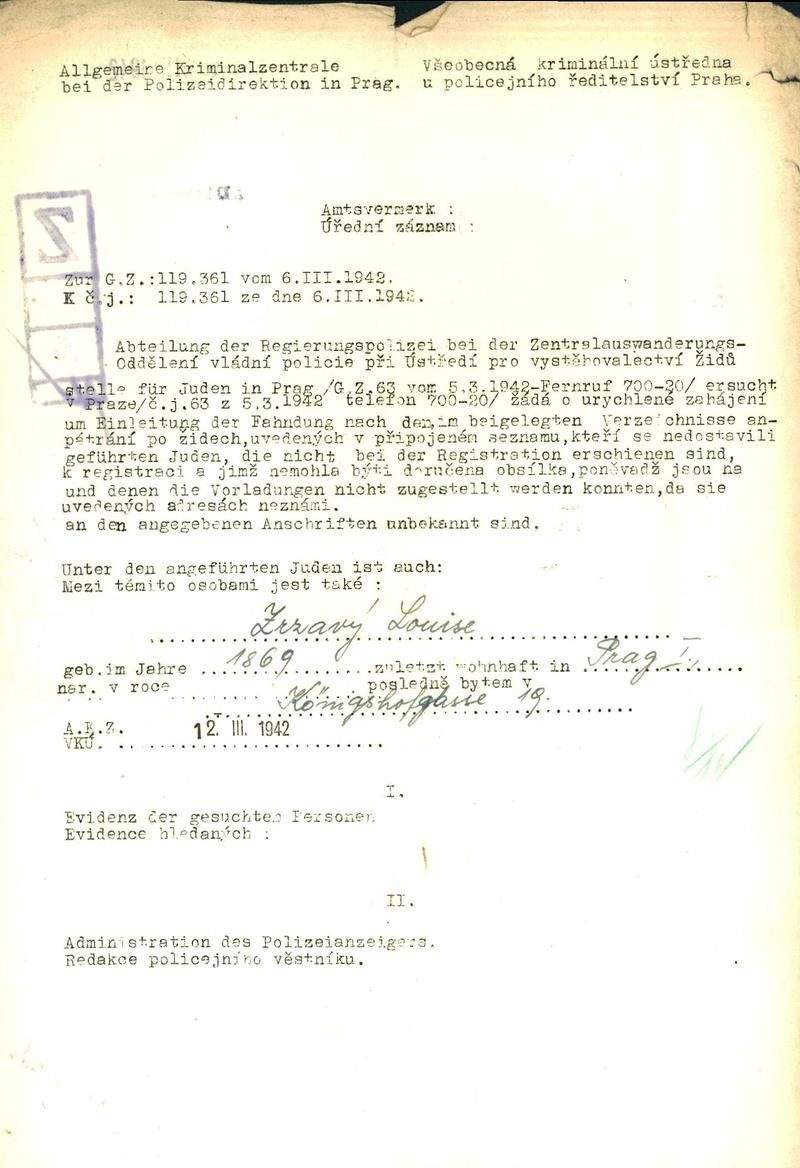 National archives Prague > Police Directorate Prague > 1941-1950 > Z > Zrzavá Louise