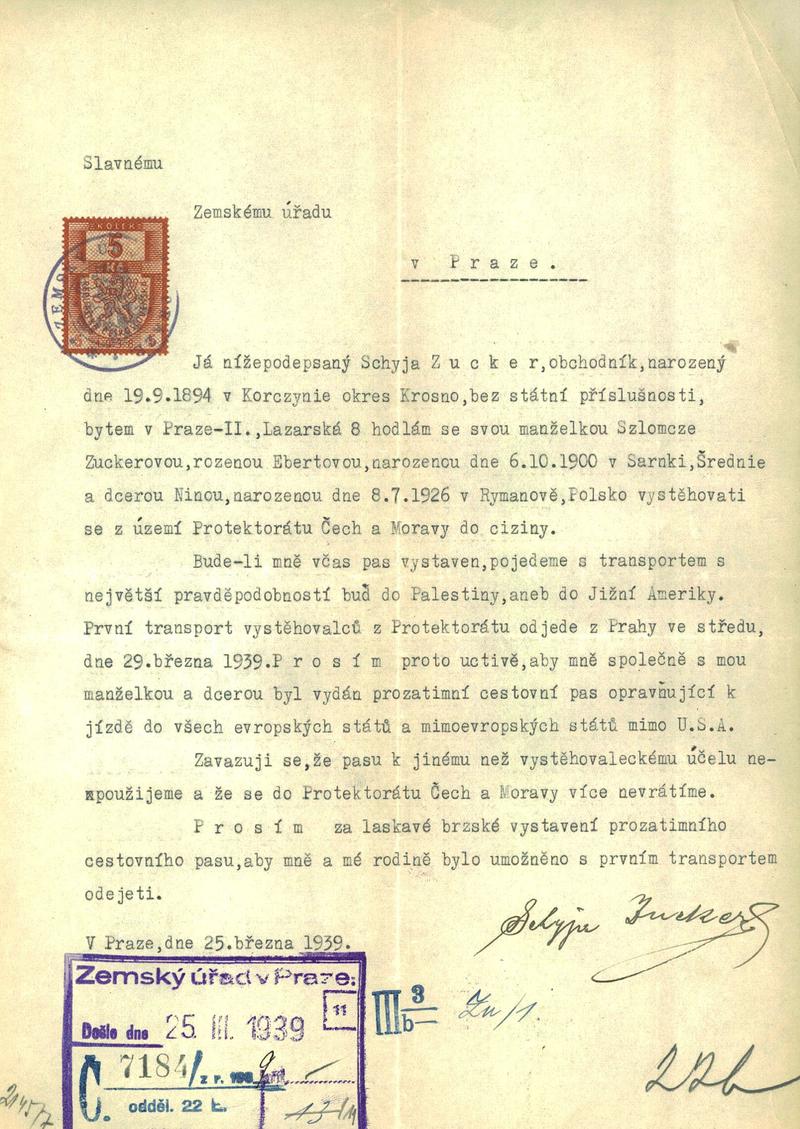 Zucker Schyja: Žádost o vydání prozatímního cestovního pasu