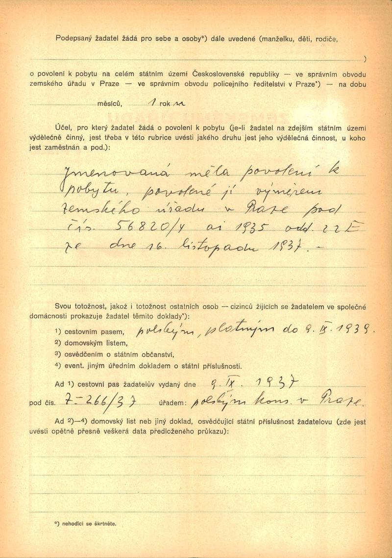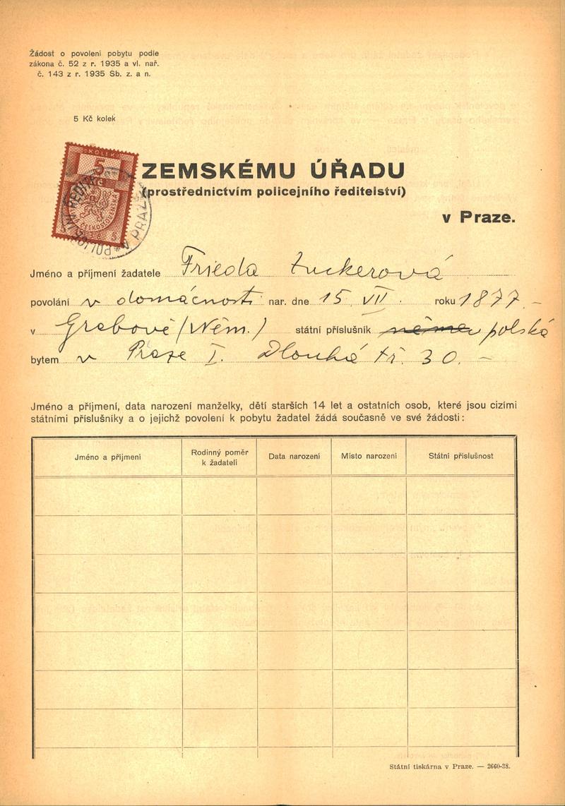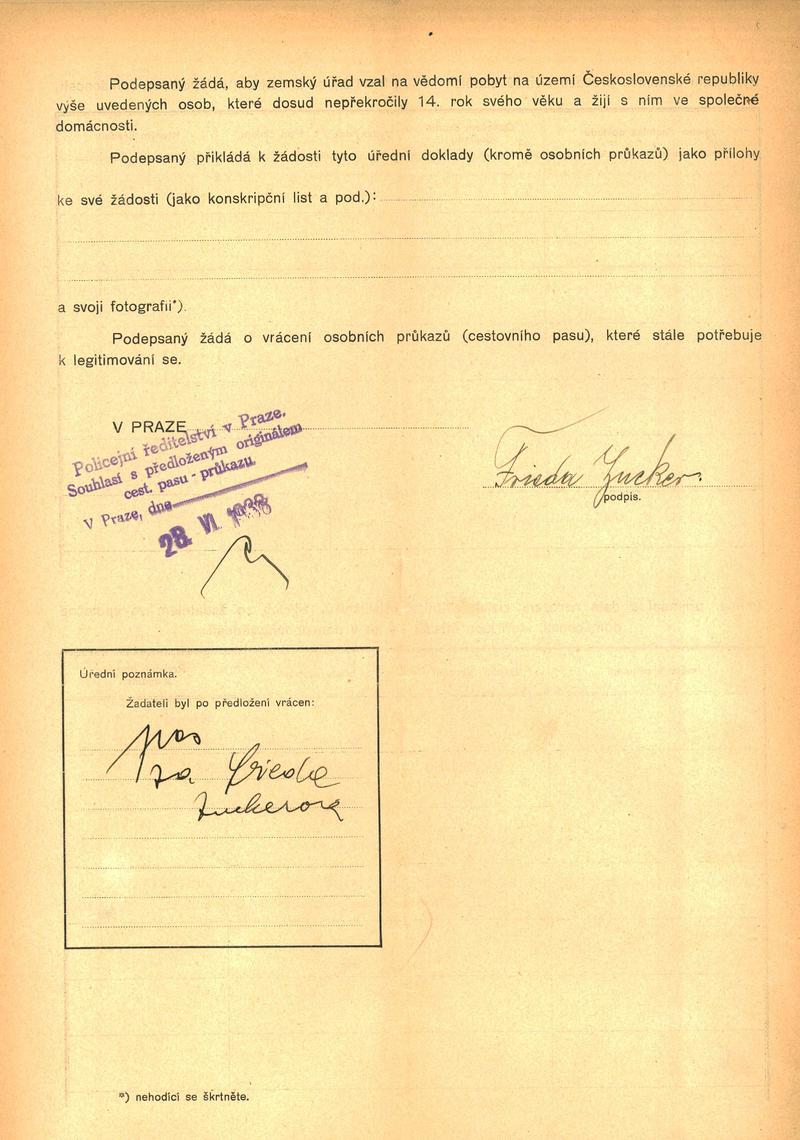 Zuckerová Frieda: Žádost o povolení pobytu
