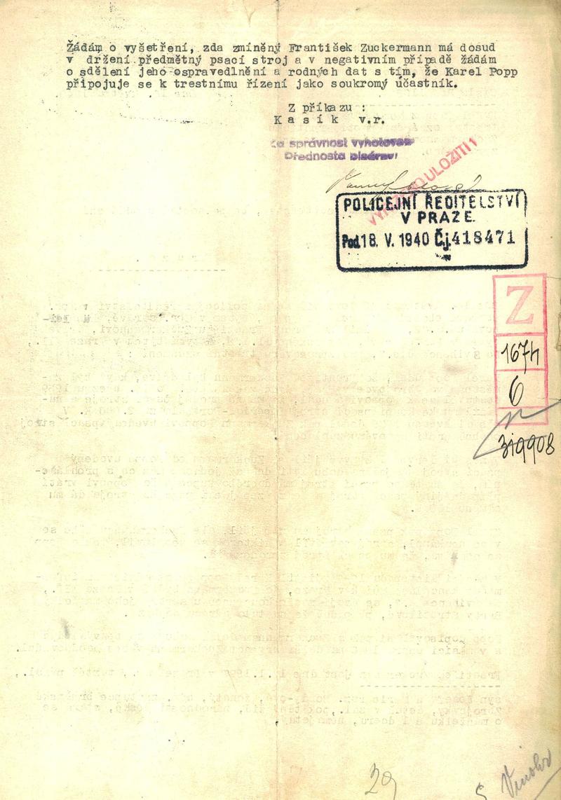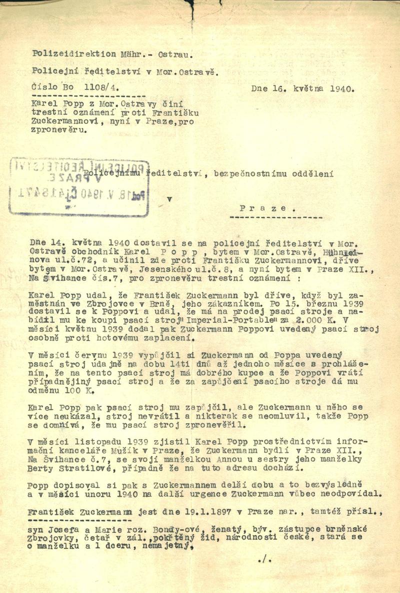 Zuckermann Franz: Trestní oznámení