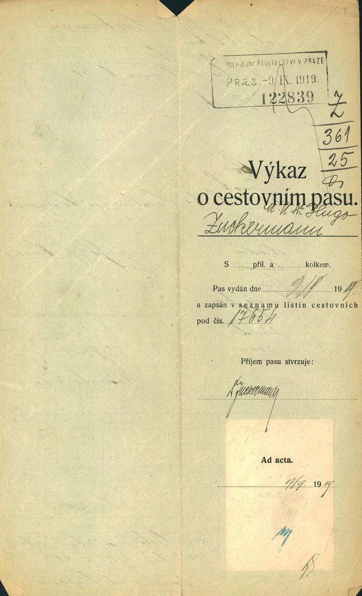Zuckermann Hugo: Žádost o vydání cestovního pasu